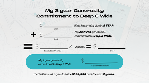 As we look ahead, part of our vision to growth both deep and wide in our impact as a church. We will need to expand, grow and stretch ourselves in many different ways in the years to come, but I wholeheartedly believe that over the course of the season to come, that God will do something truly amazing in and through The Well. With that in mind, I am excited to share that we have set a goal to raise $320,000 over the next 2 years. This might initially seem daunting, but I believe in our church and the power found in of our collective generosity.