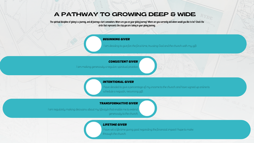 I understand that not everyone is in the same place financially, and that’s perfect! My encouragement to our entire congregation is that regardless of where you are financially, that you would prayerfully consider not how much to give, but rather ask yourself what it looks like for you to give to God in this season with a spirit of radical generosity. The answer to that question will be unique for all of us. Regardless of the gift, your generosity will propel our church further into the direction that God is leading us, and I can't wait to see what amazing things will come from it. The best is truly yet to come.
